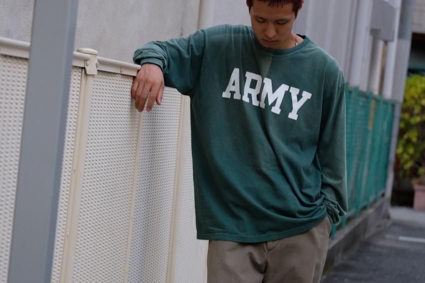 ヴィンテージを愛するBOW WOWが考える『ARMY』プリントを、 ヴィンテージさながらの表情で仕上げたプリントは、まるで使い古されたリアルヴィンテージのような風合いを持つ生地感のボディーにピッタリなカラーリングです。 ボディーは数十年経年変化したかの様な雰囲気を楽しめる一枚に仕上がっております。