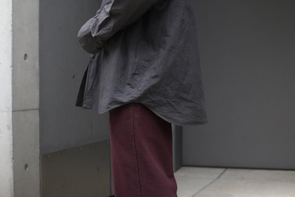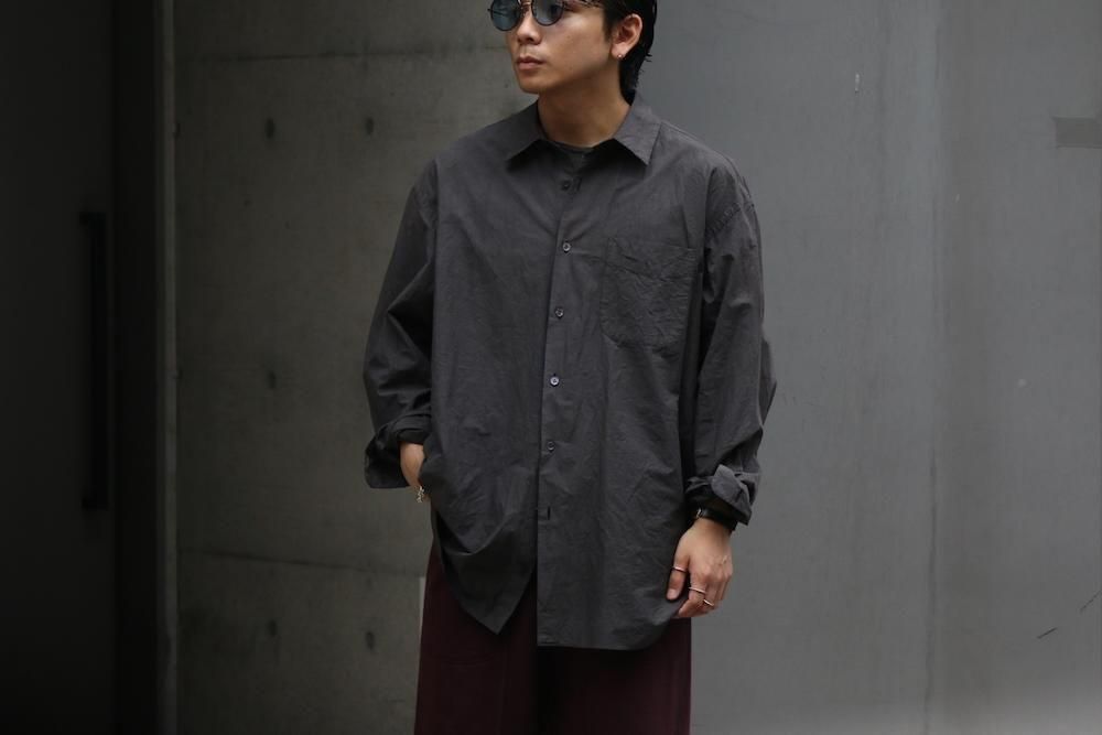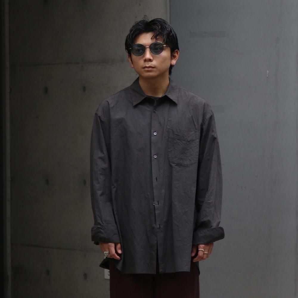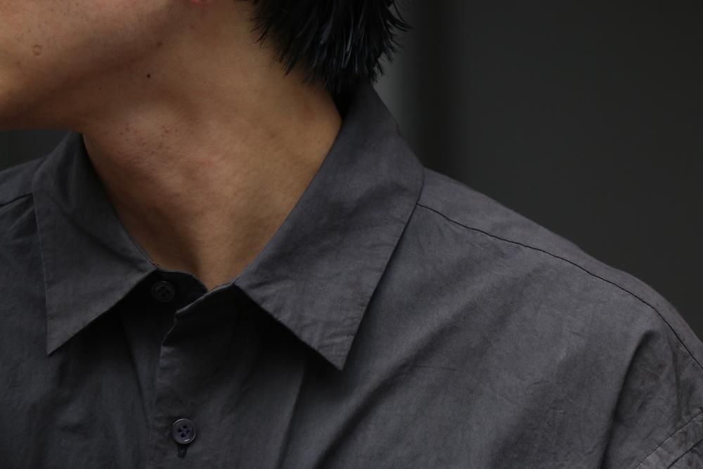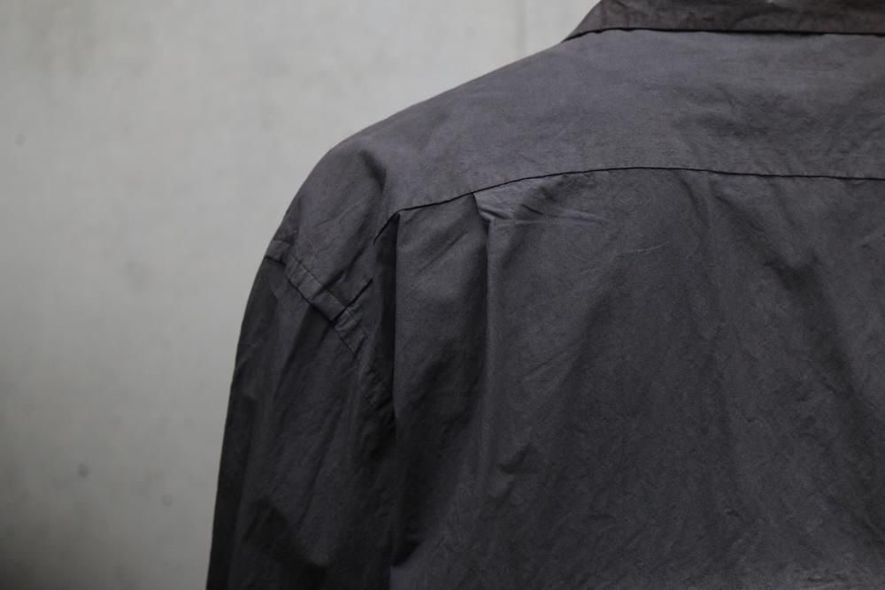 ドレスシャツらしい上品なパターンメイキングで有りながら、程よくドロップしたショルダーライン、ゆったりと広い身幅、力の抜けたルーズなサイズ感が特徴的。オールシーズン着用出来る非常に汎用性の高いアイテムです。天然染めらしい独特の経年変化が楽しめ、着用を重ね洗い込む度に、自分だけの一着に育つ、唯一無二の一着です。