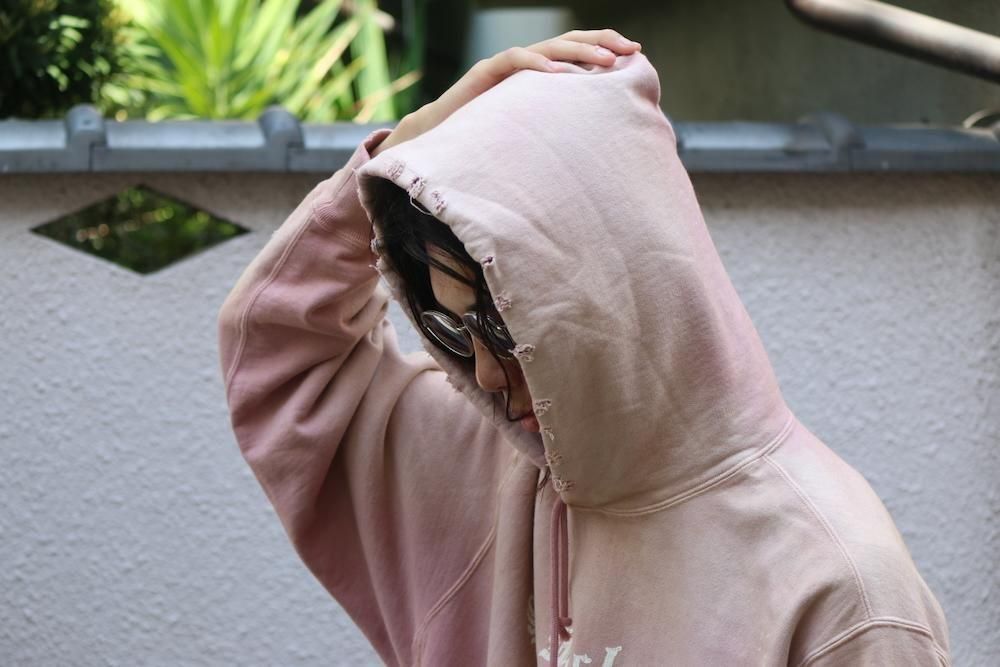 架空の大学 ST.MACLAREN UNIV.からの着想にて製作。スクールシンボルであるインディアンヘッドをフロントにプリントで表現。プリントは使い込むうちに自然と掠れたような質感を加工で再現し、ヴィンテージさながらの存在感を引き出しています。ボディには色褪せたピンクの毛スウェットを採用。長年の着用による退色や縮み、柔らかな生地の落ち感を再現し、まるで学生時代から愛用し続けたかのような佇まい。身幅をたっぷりと取りながらも、着丈は長すぎない絶妙なサイズ感が特徴的。オールドディテールを踏襲しつつ、90年代フィットに仕立てたオールシーズン対応の肉厚スウェットは、特別なビンテージ感を醸し出し、他にはない雰囲気を演出。BOW WOWらしい色遊びとリアルな経年表現が光る一着です。
