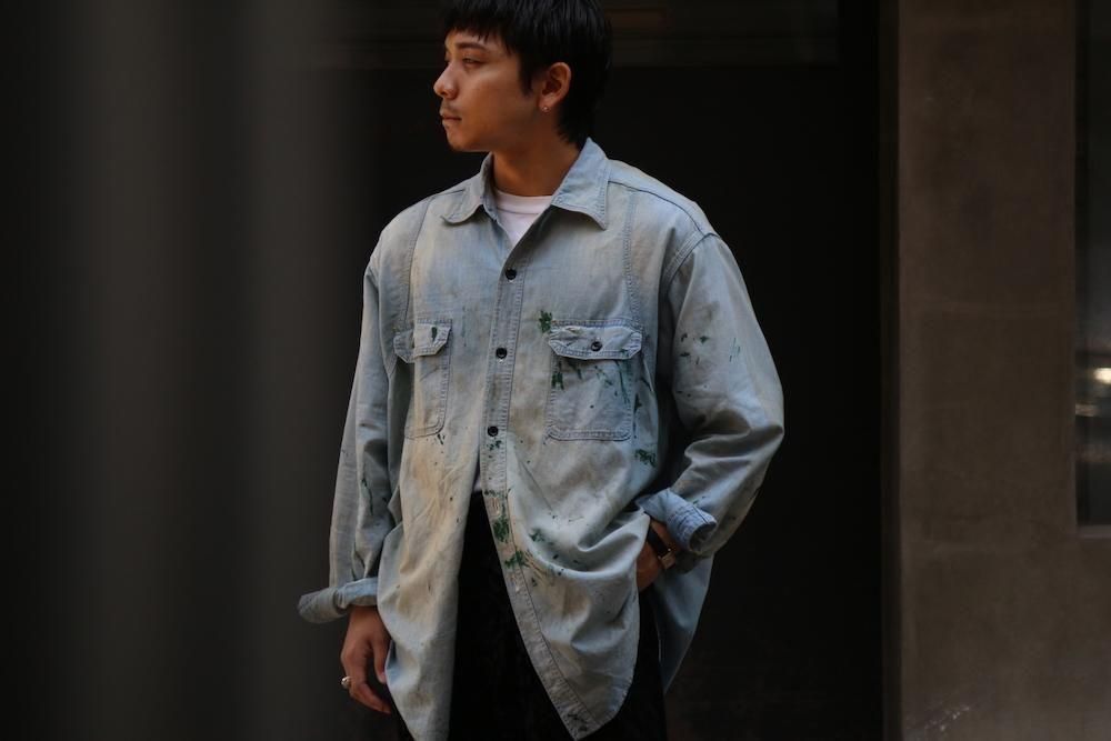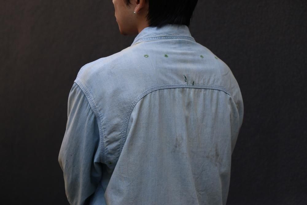 BOWWOW PAINT STAINED CHAMBRAY SHIRT, VENT HOLES
