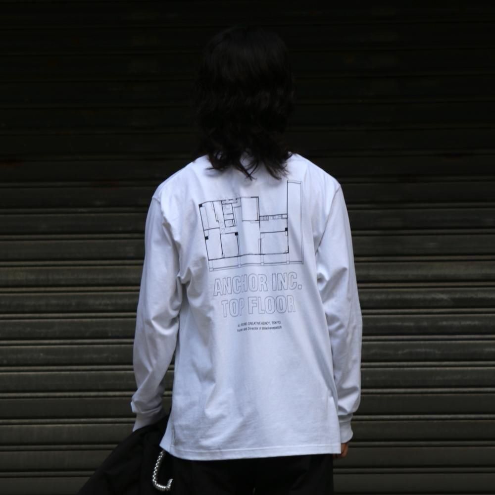 アンカーオフィスの図面をデザインをプリントで落とし込んだL/S T シャツ。 ボディは 8.5oz のオリジナルボディ。