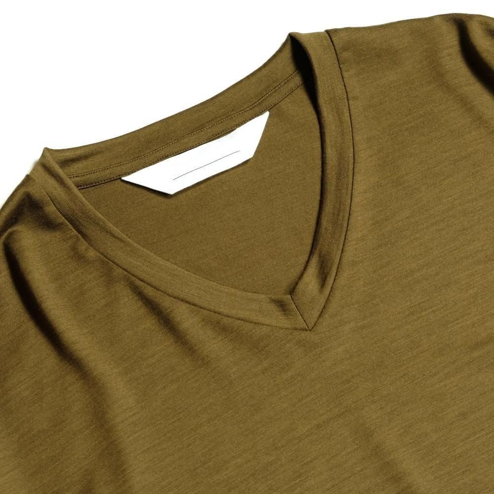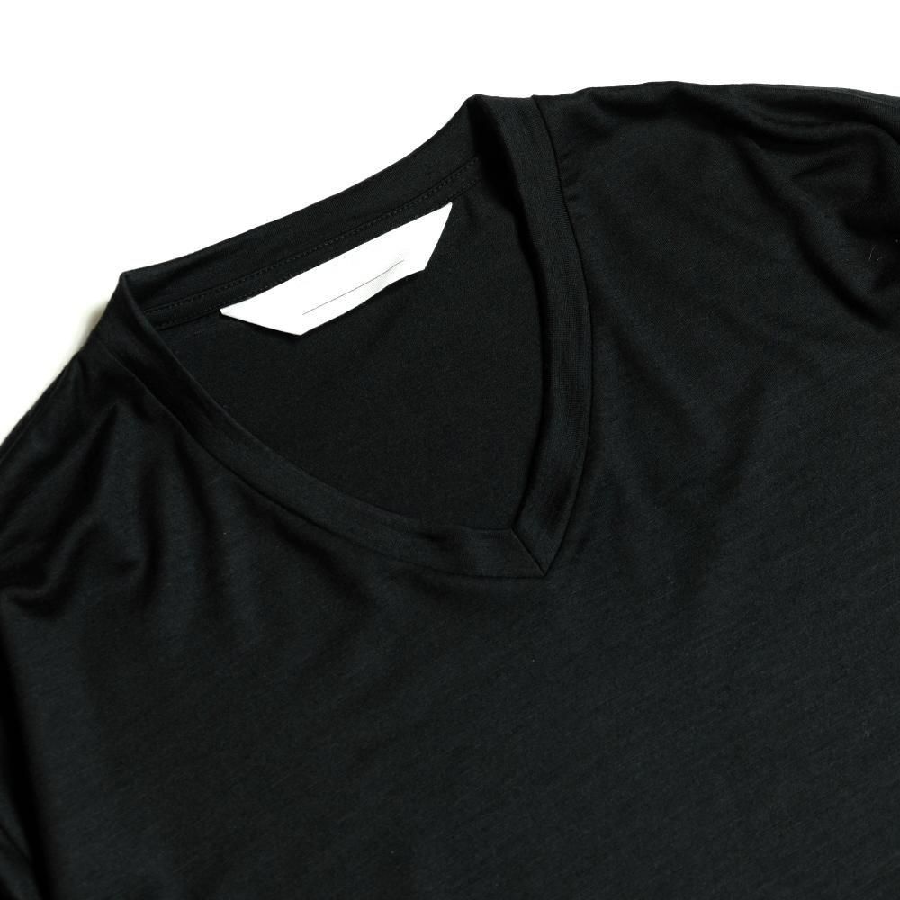 100%ウールの素材を使用した、Vネックウールカットソー。