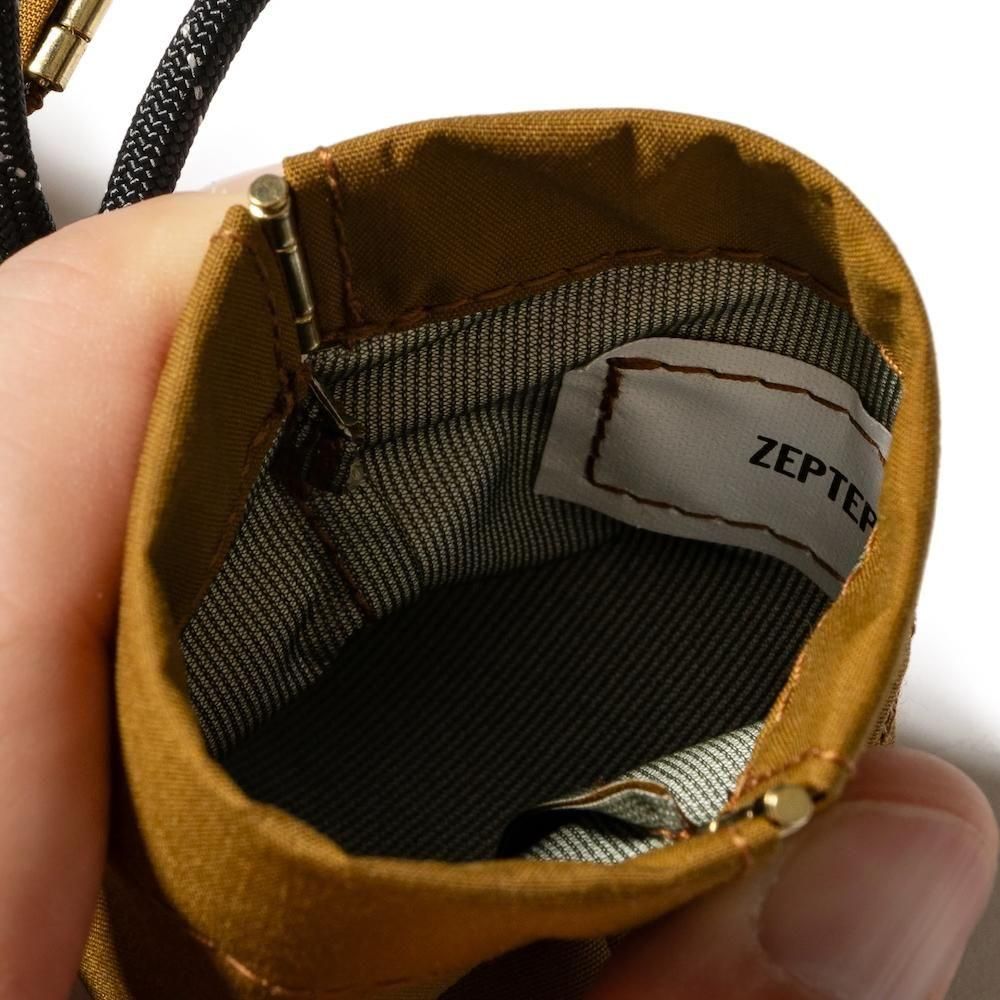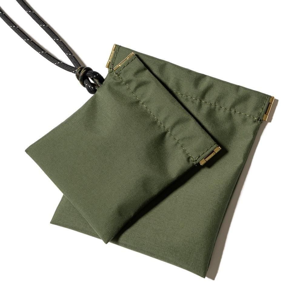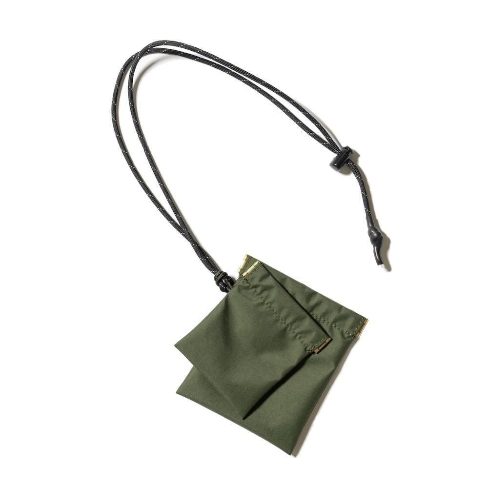 特殊なポリウレタンの構造により防水性・透湿性に対して優れた性能を兼ね備えた3層の特殊素材を使用しています。ポリウレタン膜にある1〜30マイクロメ−タ−の細かい孔が水を通さず、逆に内部に滞留した湿気を外部に放出する機能を備えています。アウトドアはもちろん、雨等の水に対して最適な素材です。今回はサイドの縫製や、ストラップの取り付け部分の補給布を表に出し、裏返したようなアレンジを加えています。小銭や小物などの収納力に優れたアイテムです。