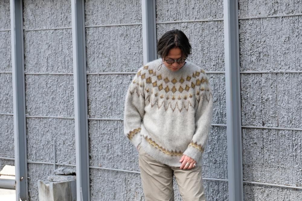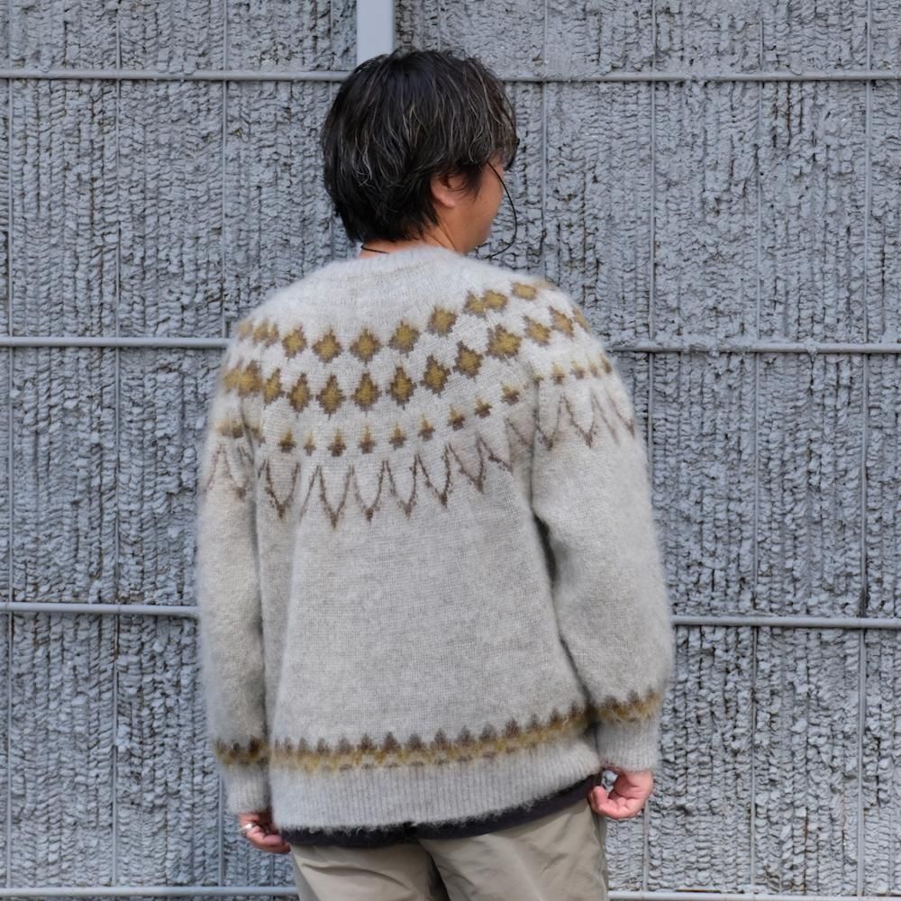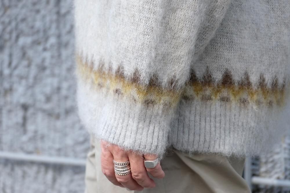 空気を含む、軽快で保温性抜群のモヘア素材をたっぷりと使用。トーンを抑えた落ち着いた色目に加え、たっぷりとした身幅のボックスシルエットが特徴的。程よいボリュームから単体での着用は勿論のこと、インナーとしても大変使い勝手の良いアイテムです。